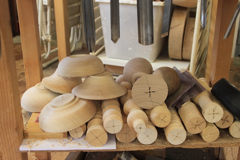 Die ersten Versuche im Langholzdrechseln unter der kompetenten Leitung von Drechselmeister Sven Jurisch waren durchwegs von Erfolg gekrönt, und so sammelten sich bis am Ende des zweiten Kurstages einige Rundstäbe samt Spule und Kugel an.