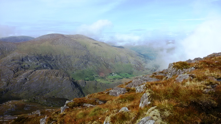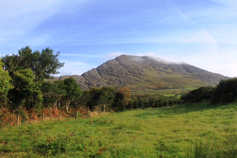 Es scheint ein schöner Tag zu werden. Die Sonne drückt schon durch und am Hungry Hill hängen nur ein paar Nebelfetzen. Z’Morgen und Toilette für Mann und Haus und dann kann’s auf grosse Fahrt gehen Richtung Allihies. Unterwegs kommt uns eine Gruppe Wanderer entgegen, die wahrscheinlich zum Hungry Hill abzweigt. Kurz entschlossen fragen wir einen älteren Herrn nach dem Weg zum Hungry Hill. Drive all the way beyond there houses and there you’ll find a parking lot! Der Weg wird immer schmäler und schliesslich kommt uns eine Lady entgegen und mahnt uns zur Umkehr. Park your car down by the mainroad. Gesagt, getan. Husch husch den Rucksack gepackt, die Wanderschuhe geschnürt und… die Wanderstöcke nehmen wir auch mit, oder? Und ab geht’s - wo habe ich jetzt den Autoschlüssel? Oh nein, mir schwahnt… den habe ich Idiot doch tatsächlich hinten in der Garage eingeschlossen! Bloody idiot! Zum Glück haben wir einen eti-Schutzbrief. Anruf zurück in die Schweiz.