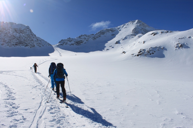Aber auch in der vermeintlich freien Wildbahn lauert die Verdichtung. So erlebt auf der Skitour zum Piz Sesvenna. Vollbelegte Hütte und dann am Morgen kein Wasser auf den Toiletten – nota bene keine Plumpskloos. Mir stinkt‘s, nicht nur weil draussen der Nebel um die Hütte schleicht und der Himmel darüber blau macht.