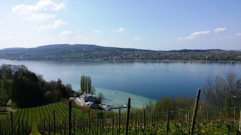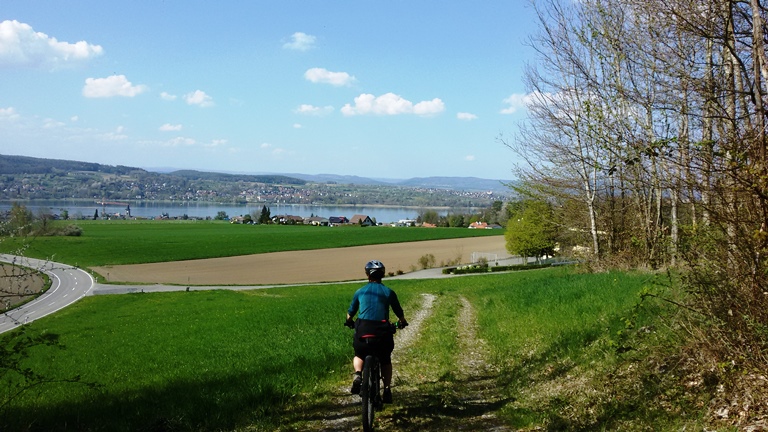 An Ostern haben wir genügend Eier, um den knackigen Singletrail nach Steckborn an den Untersee hinunterzubrettern. Leider führt dann der Rückseeweg nach Ermatingen direkt der vielbefahrenen Durchgangsstrasse entlang. Anderntags weichen wir auf eine aufsteigende Alternativroute aus und landen prompt wieder zuoberst auf dem Seerücken.