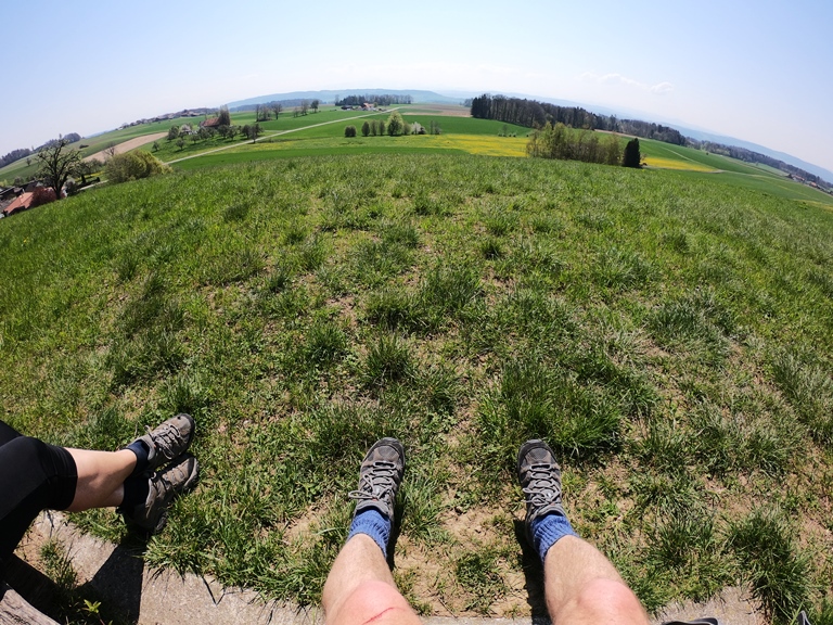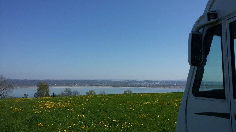 Nach kleineren Startschwierigkeiten – ich war der Meinung ein als ungültig abgestempelter Fahrzeugausweis sei Altpapier und dürfe also getrost entsorgt werden – bringen wir unseren kleinen Onkel in Frühlingsschuss. Getreu meinem Lebensmoto fahren wir etwas gegen den Strom, sprich gegen Norden und schlagen unsere Zelte auf dem Zelglihof auf dem Seerücken auf mit wunderbarer Aussicht auf den Untersee. Im Gegensatz zu den Fahrenden müssen wir mit keinen Resentiments rechnen.